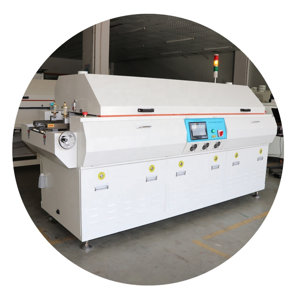 Bu 6 bölgeli SMT kurşunsuz reflow lehimleme fırını, hassas sıcaklık yönetimi ve tekrarlanabilir profiller için gelişmiş PLC+PID kapalı döngü kontrolüne sahiptir. PCB üretim hatları için tasarlanan bu ürün, verimliliği güvenilirlikle birleştirir.